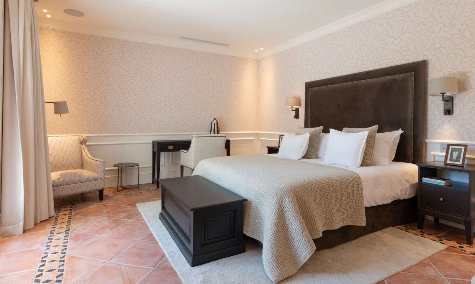Villa Cortesin is both elegant and modern, with its furnishing and decoration being careful to retain some more classic Andalucian styles whilst also embracing some fun and colourful touches too. The quality of its design is evident throughout and whilst some avant-garde technology is in use within the property it is all simple to operate with user-friendly interfaces.