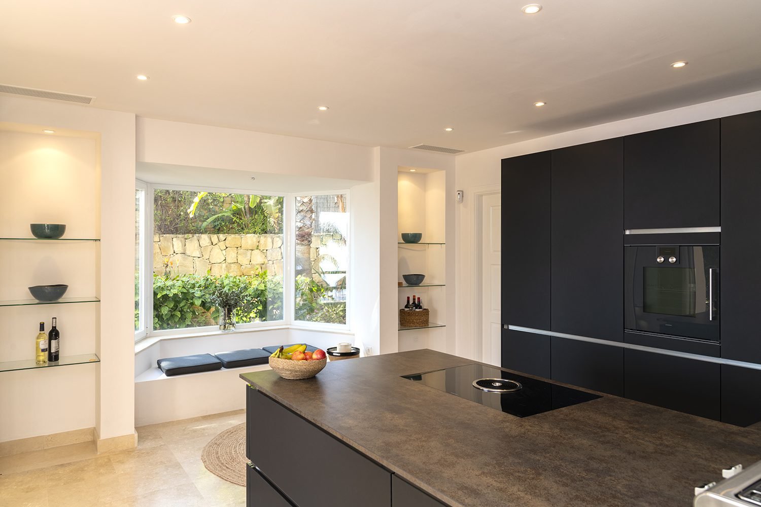 On entering the villa you are greeted by a double-height ceiling and dramatic balcony with glass doors then leading through to the living area and terrace with those all-important views.